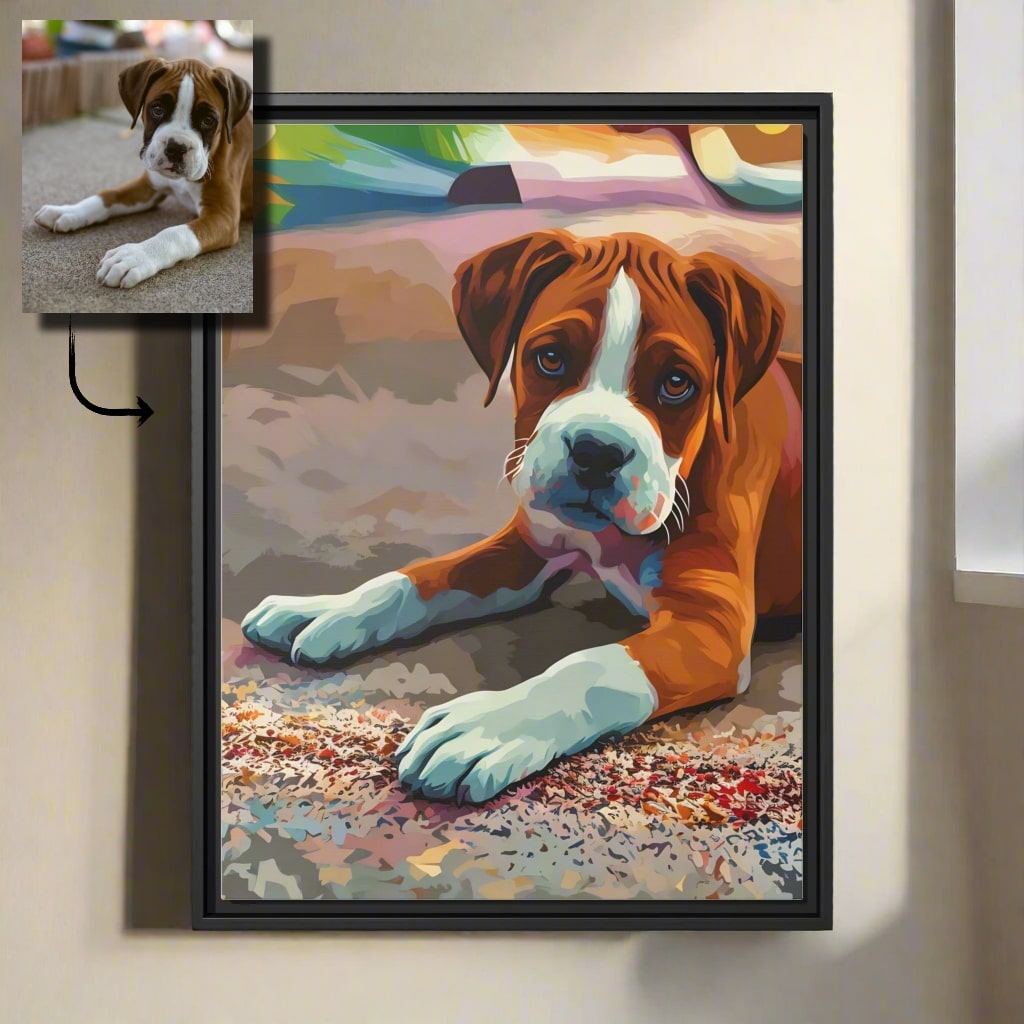 Give your furry bestie the spotlight they deserve with a one-of-a-kind Pop Art Style Portrait Canvas! Perfect for pet parents who know their doggo, kitty, or even hedgehog is basically royalty. This framed beauty transforms your favorite pet pic into timeless art that screams, “I’m adored.”